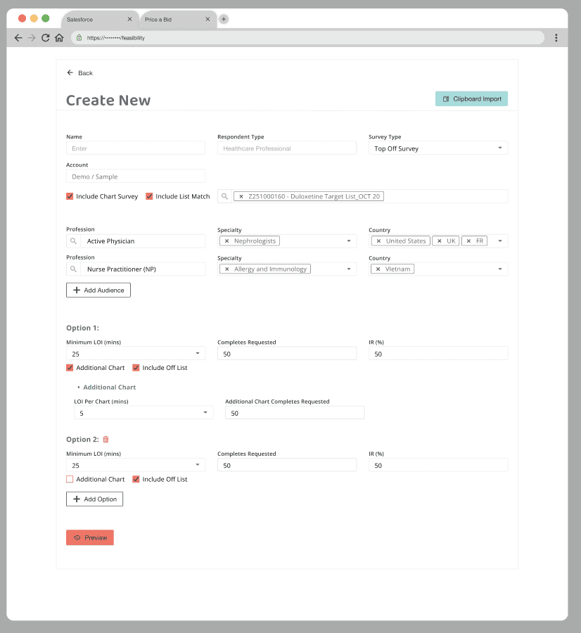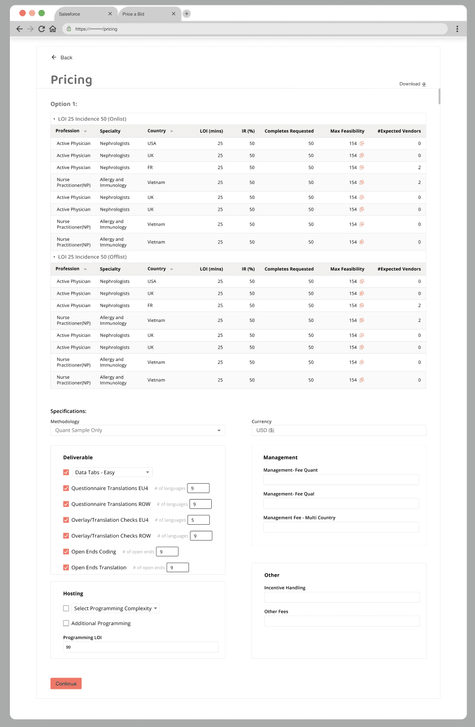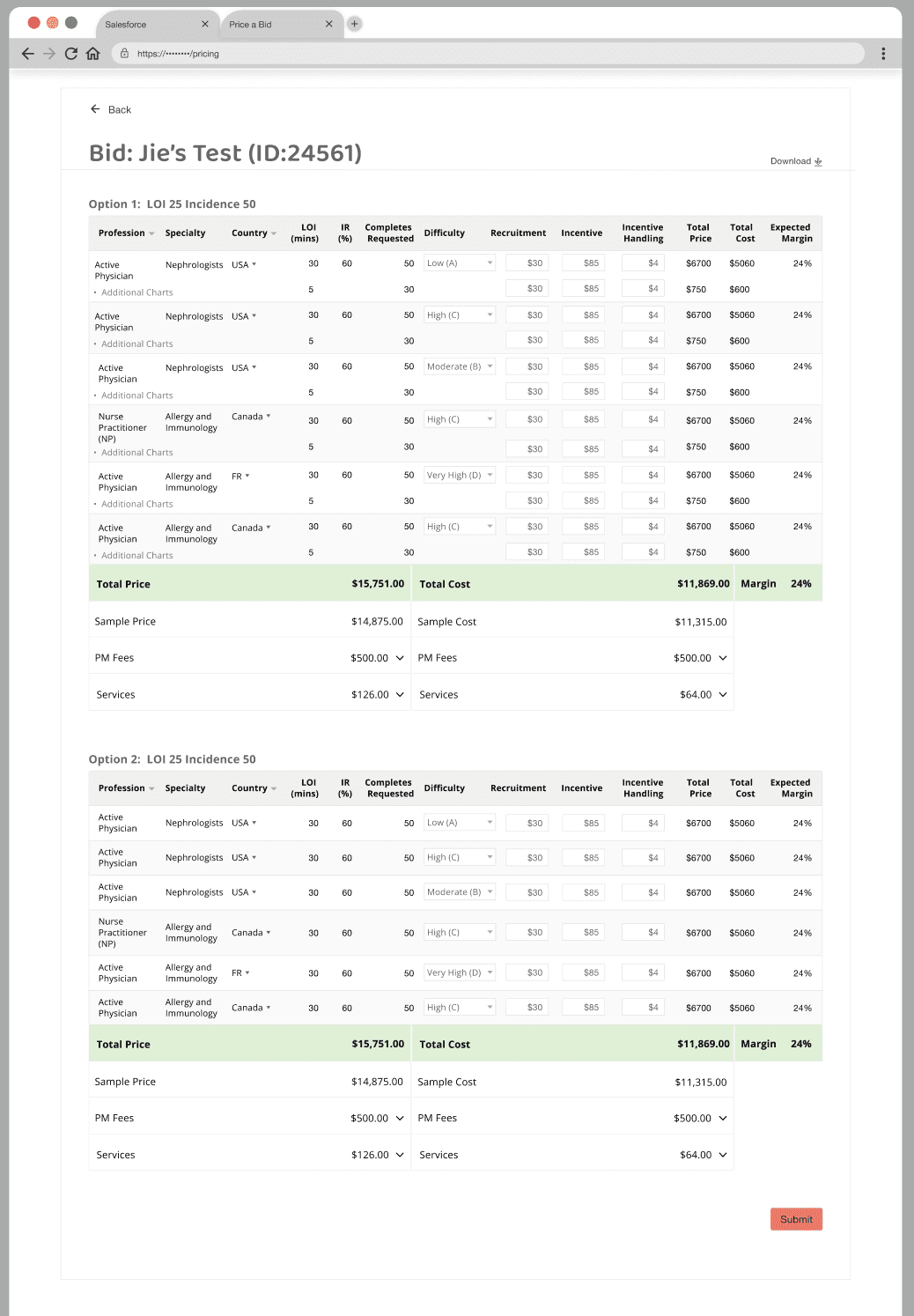 Flagship Internal Product · B2B · Healthcare Research. Designing a core internal platform that enables teams to evaluate feasibility and generate accurate pricing — supporting confident decisions at scale.